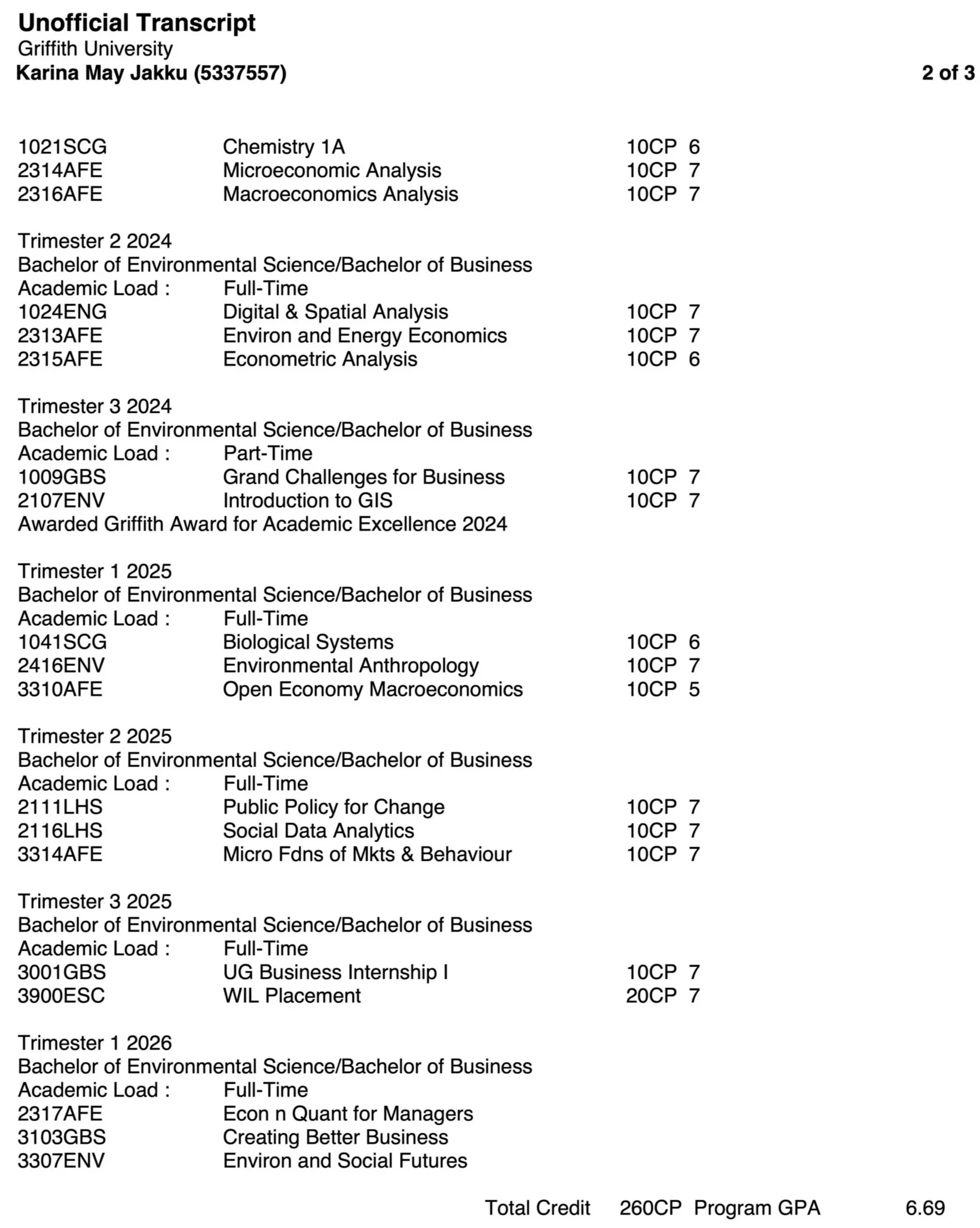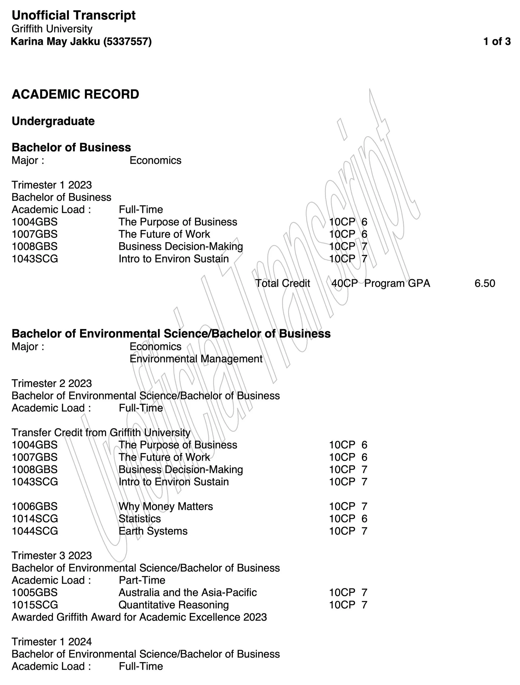 Unofficial transcript